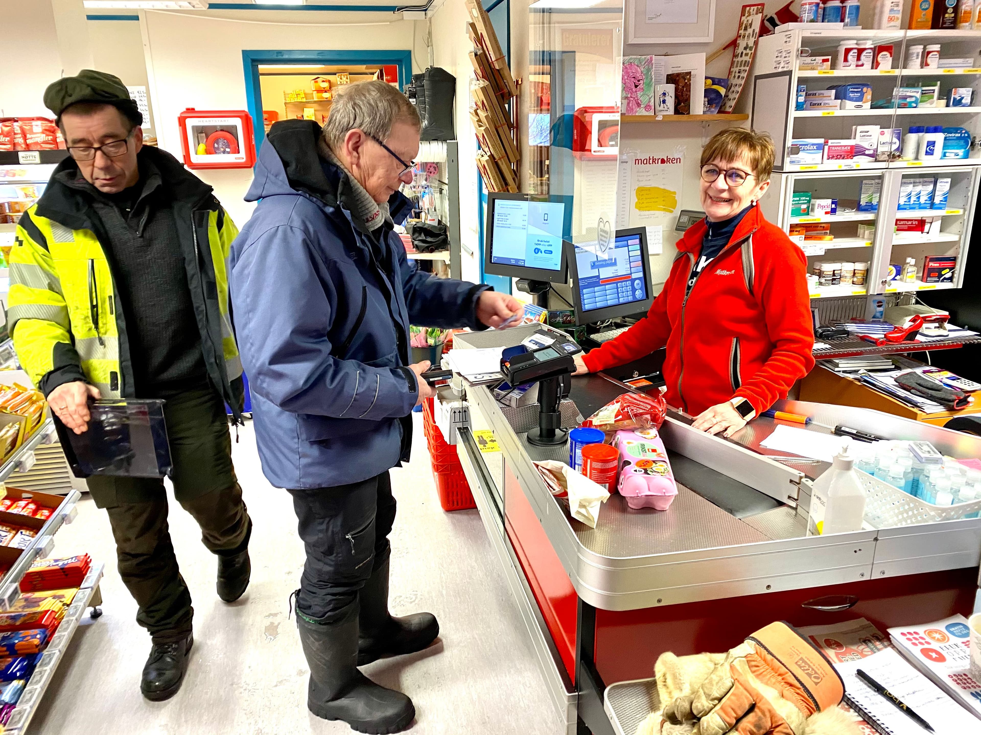 Hovedbilde: Butikken er bygdas samlingspunkt hvor du kan levere tipping og hente posten eller kjøpe fiskekort. Her har Bjørg og mannen Kjetil Hanssen drevet bedriften «Kunes opplevelse og handel» i 11 år.