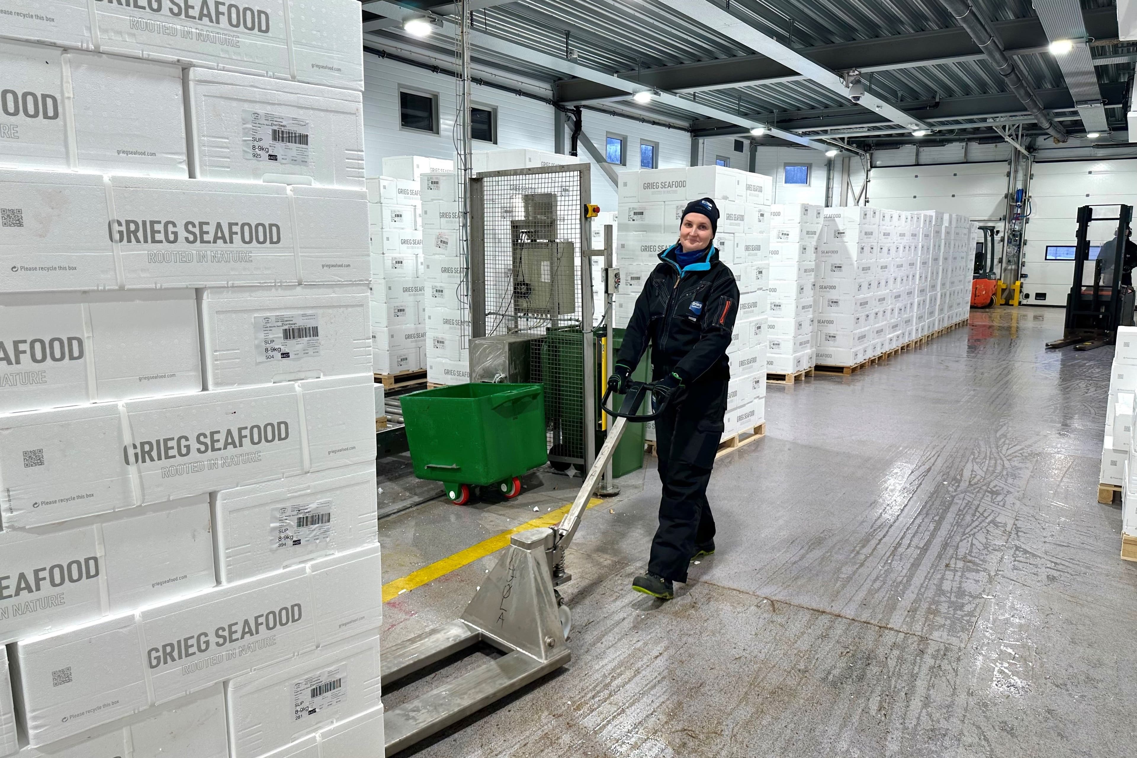 På kjøla klargjøres dagens leveranse med laks. Fem trailere skal i løpet av de neste timene forlate Alta med fersk fisk til markeder i Europa. Daniela er ordre- og lastansvarlig med ansvar fra ordren kommer inn, til den er lastet om bord og på sin vei videre.