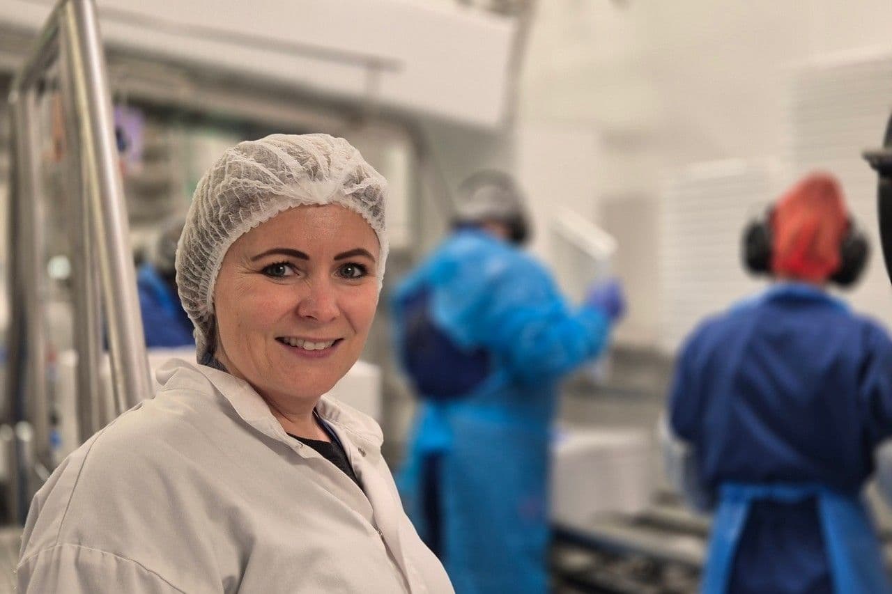 På slakteriet til Grieg Seafood i Alta er Jannie (40) godt i gang med sin nye hverdag som kvalitetsleder. Hun er bare noen måneder inn i jobben, men kjenner seg allerede hjemme i fagfeltet. Hun kommer fra meieribransjen, og forteller at kvalitetsarbeid på tvers av næringsmiddelindustrien i bunn og grunn handler om det samme.