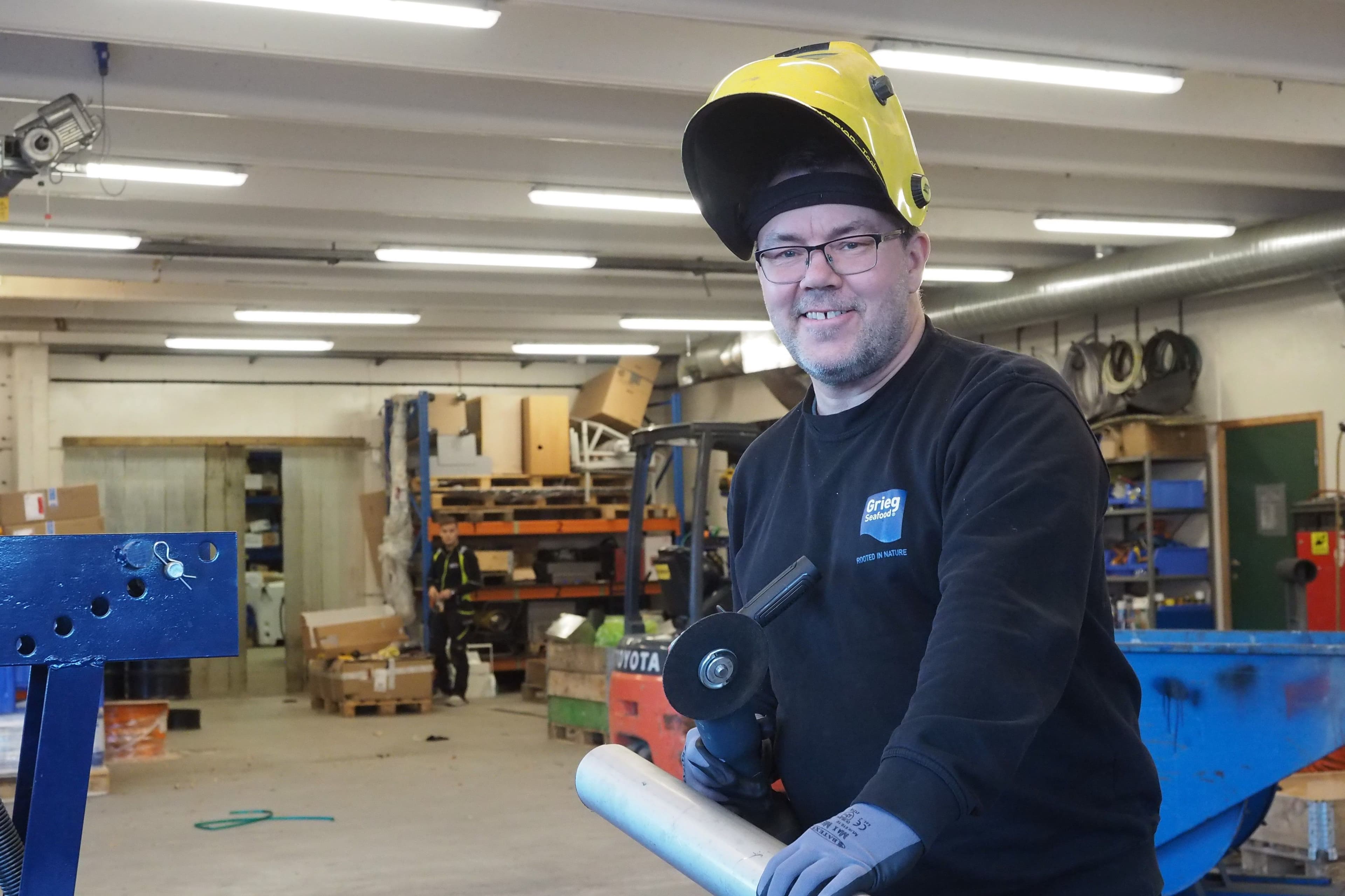 Selvsagt blir det fliring på verkstedet, og de videre kommentarene om den glade laksen spretter fra mann til mann.