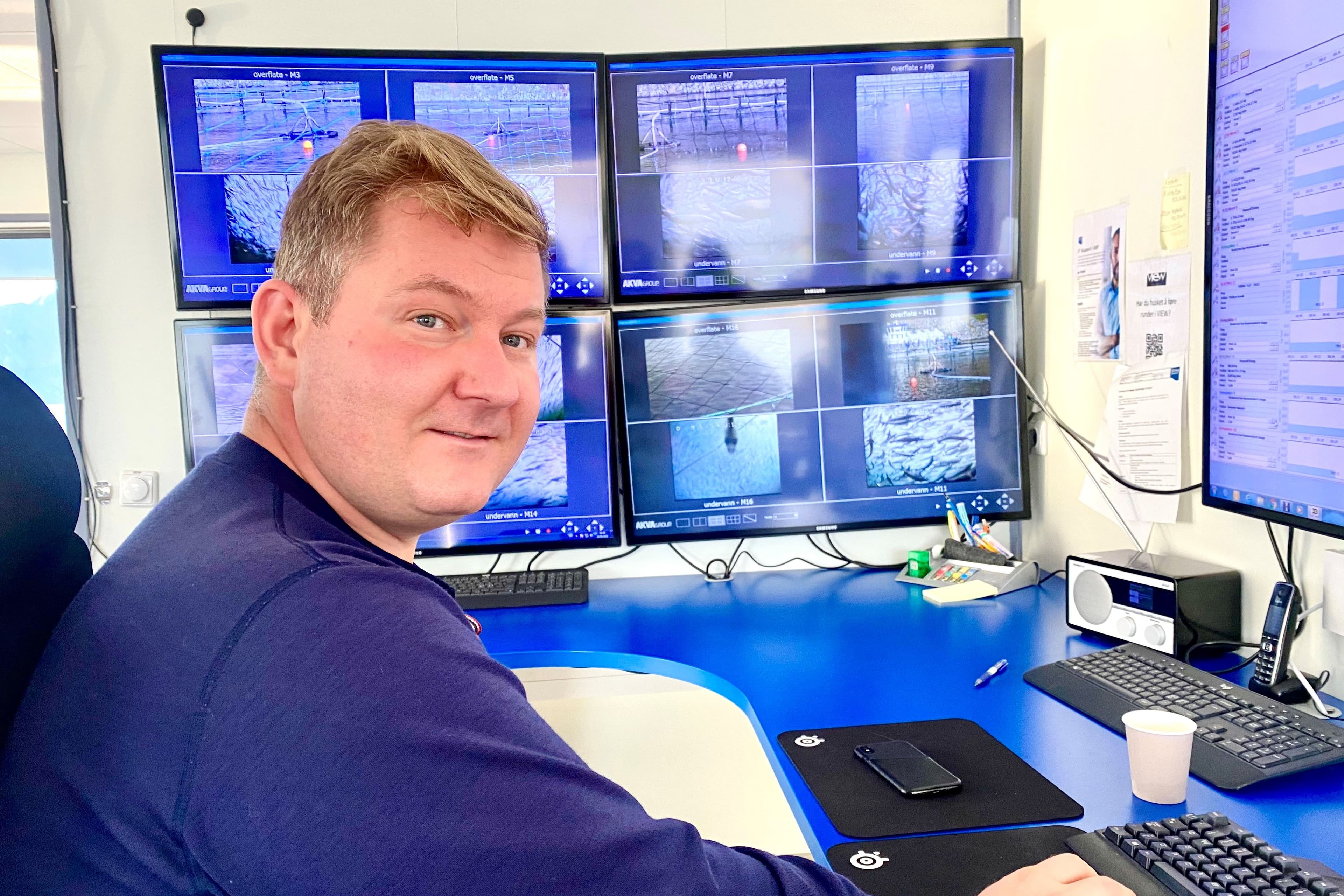 — Jeg styrer formengden ut fra lakens spise- og bevegelsesmønster. Kameraene i merdene er mine øyne, og vi følger med hele tiden.