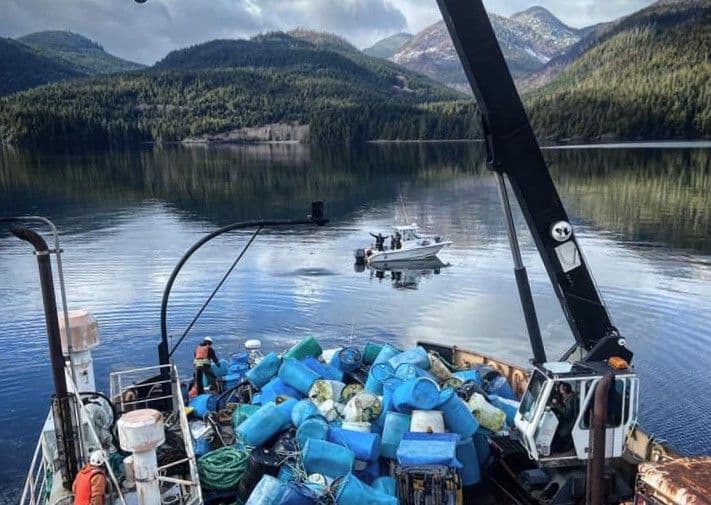 "And to think that all that plastic was polluting wild salmon habitat and posing a significant entanglement threat to wildlife for nearly a decade," said Captain Josh Temple from the Coastal Restoration Society.