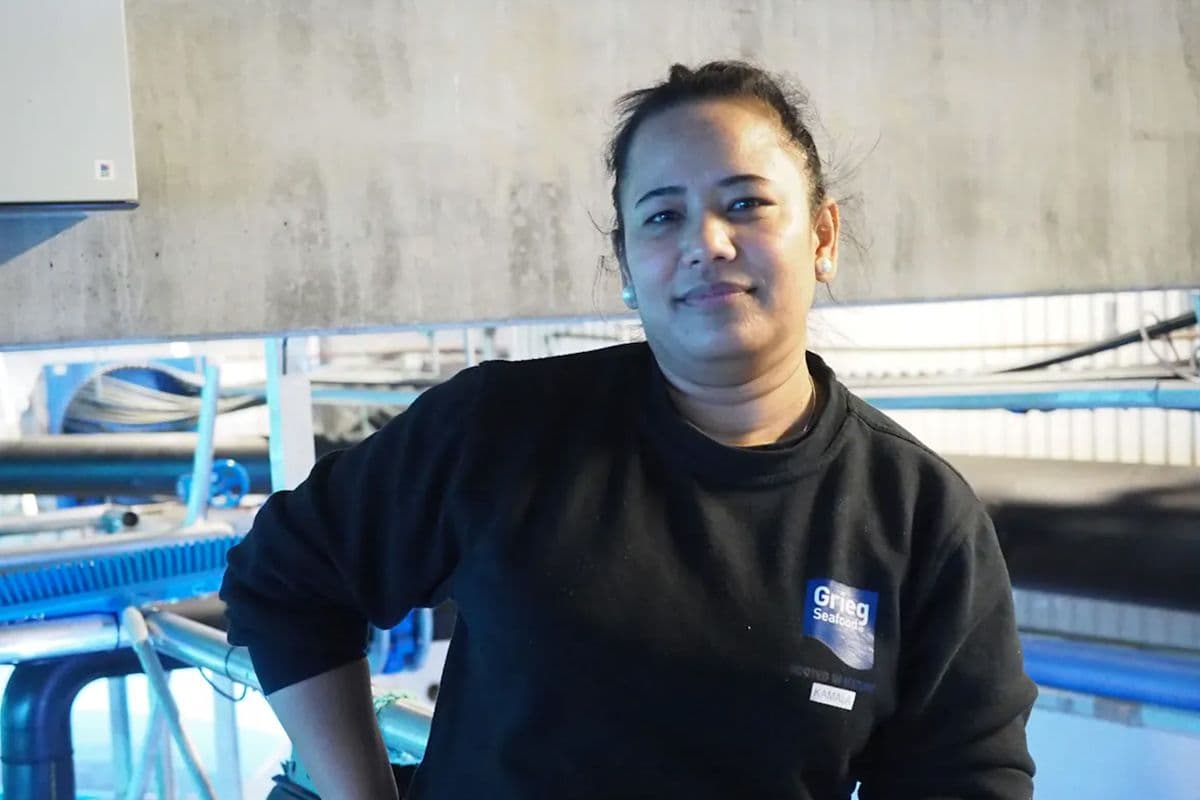 The plan was to work with the Norwegian family for one year. But Kamala thrived, and her happiness increased as she learned the language. She got a temporary job in a care home, while the search for a permanent job led her to Grieg Seafood and the hatchery in Landersfjord.