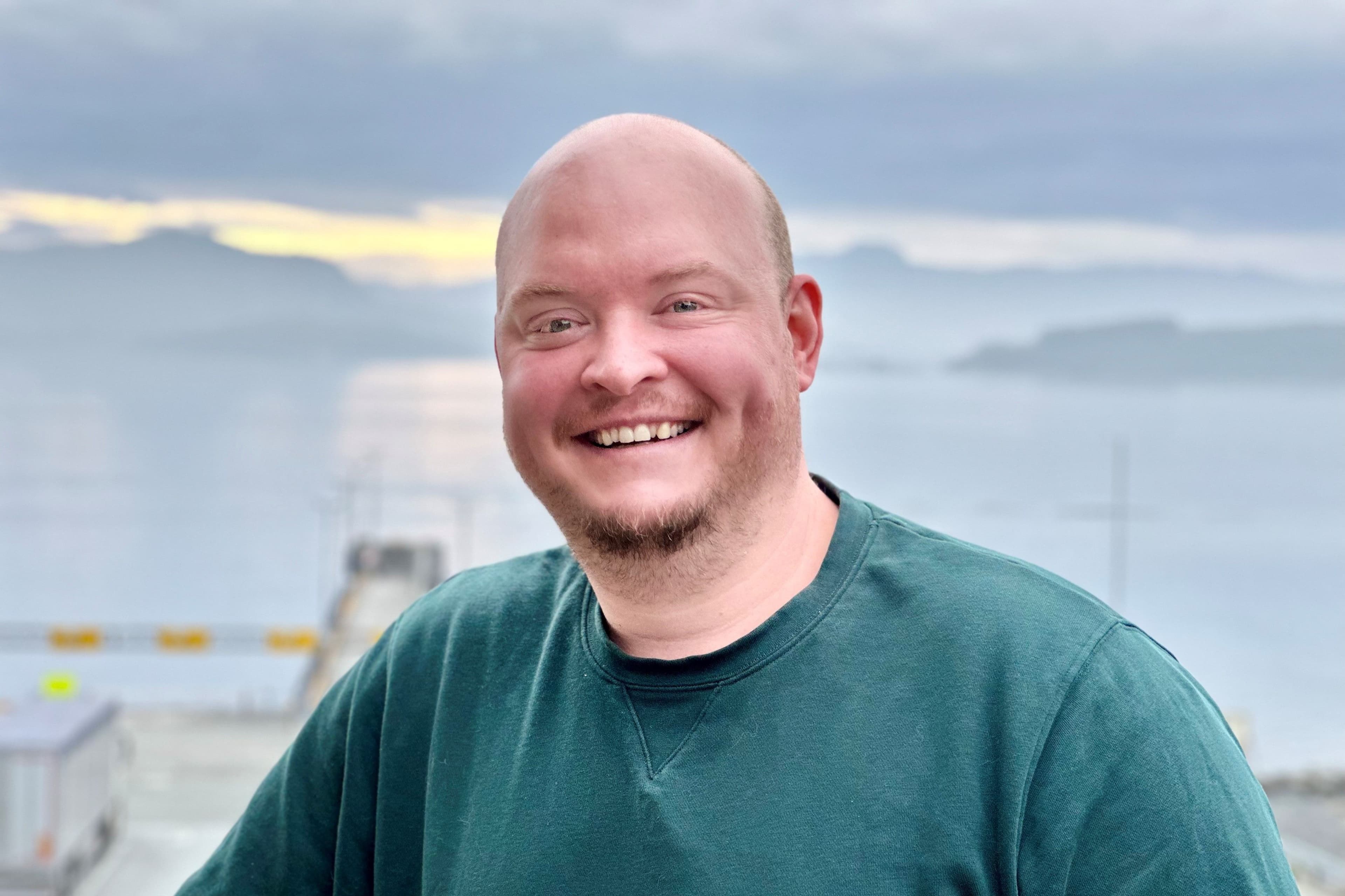Fredrik jobber som kvalitetsmedarbeider på Grieg Seafood sitt slakteri på Sjernarøy.