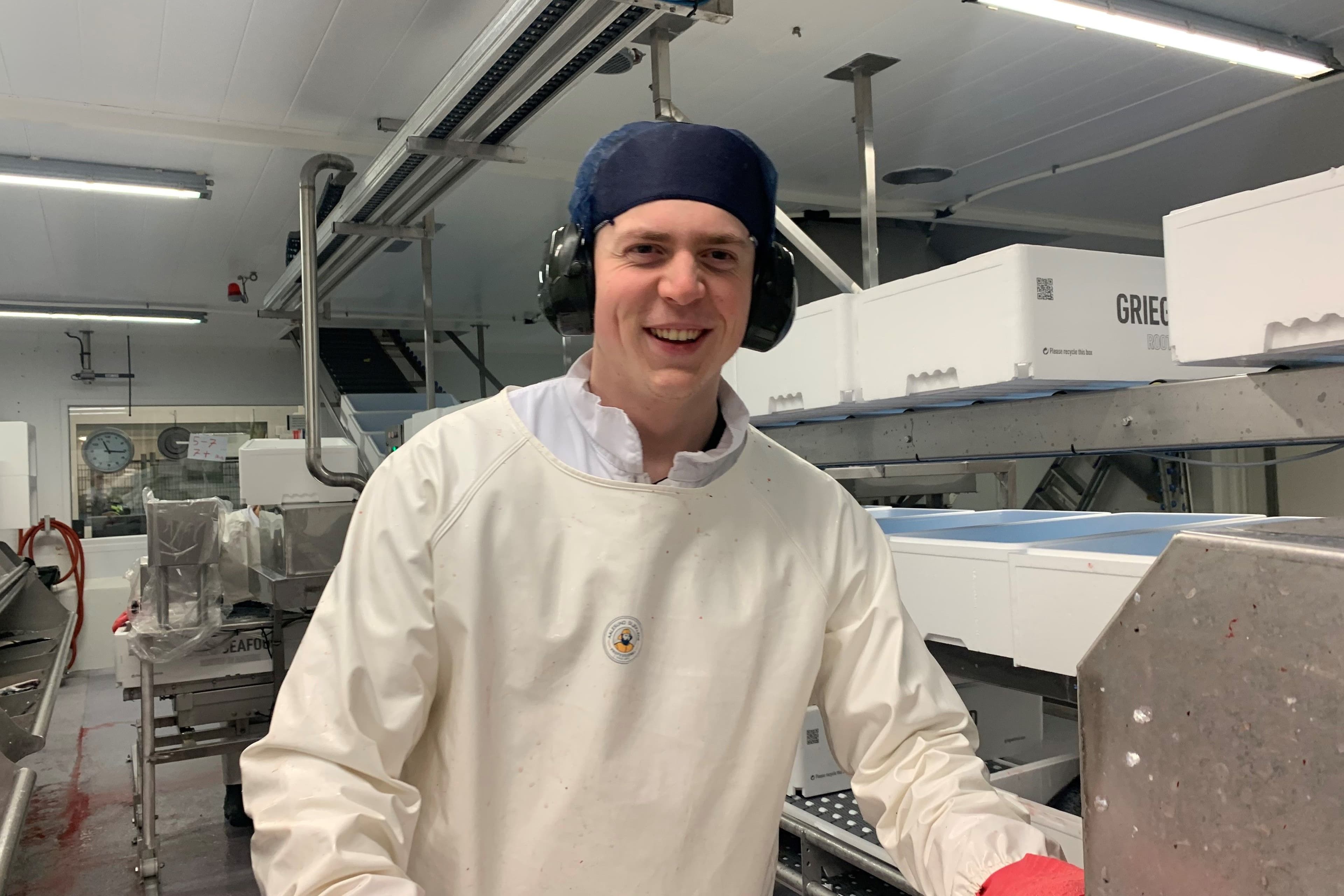 I snart ett år har han arbeidet ved Grieg Seafood Rogaland sitt slakteri på Helgøy. Han innså ganske raskt etter at han var ferdig med videregående skole at han hadde valgt feil fordypning.